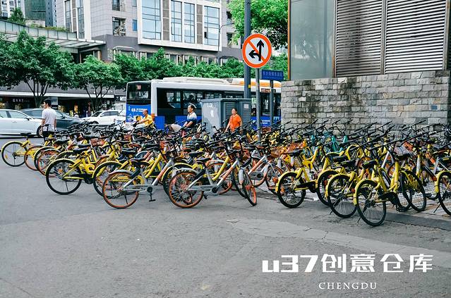 U37创意仓库位于成都市水碾河街,坐地铁的话,地铁2号线牛王庙站下车,从C出口一心桥街走出,出地铁站你能看到密密麻麻的共享单车被停放在这里。