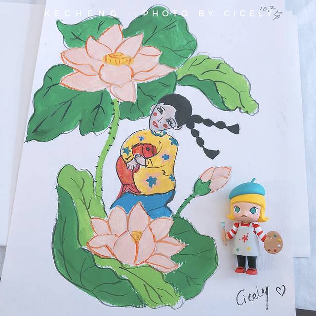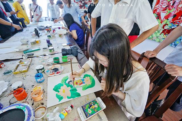 跟着当地的农民画老师们,学着画画,虽然我画了个蛇精脸,不过还是得到了老师的好评呢!