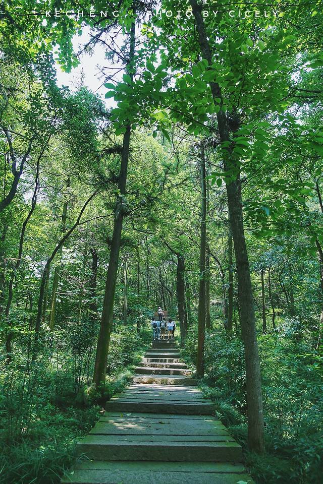 虽说是山,但其实烂柯山并不高,拾阶而上,一路树影斑驳,眼前的绿色让人忘却夏日的炎热。不一会就到了山顶~