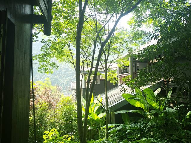 选择一个离各个景点较近,环境清幽的酒店,是此次行程的重要任务,看去哪儿网上的点评,环境特别不错,貌似一个公园,于是就毫不犹豫地订下来。。订的是火寨高级双床房,第一天来到前台,服务小姐特别热情,可能也是因为端午节出行的人也不是特别多,给我们特别升级到了别墅区的木寨房。。停好车后,有专门的电瓶观光车将我们送达客房。。木寨房是依山而建的别墅,第一栋别墅有两层,各有十间客房。。