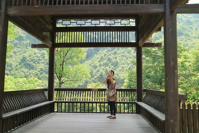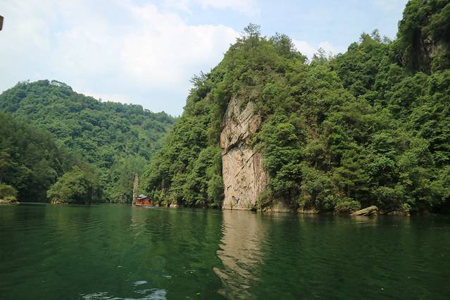 到宝峰湖乖船有两种方式:一种是乘坐景区中巴车(12元/人),另一种是步行,我们选择步行,节约了几十元。。也就三十分钟左右的时间,不过沿途也没有什么特别的景色,只是有个寺庙,不过没有和尚在里面。。