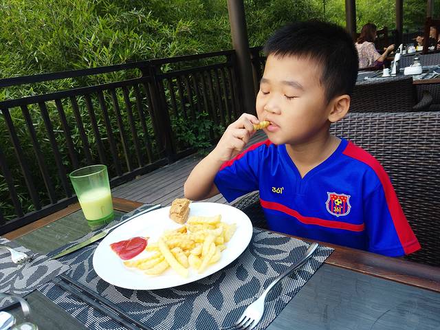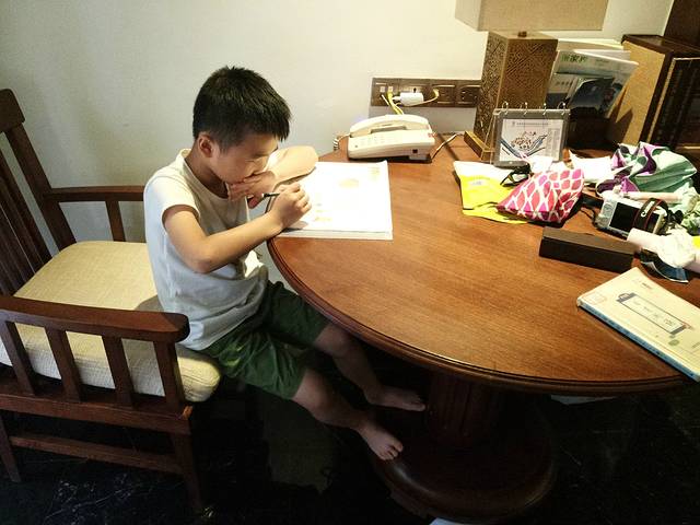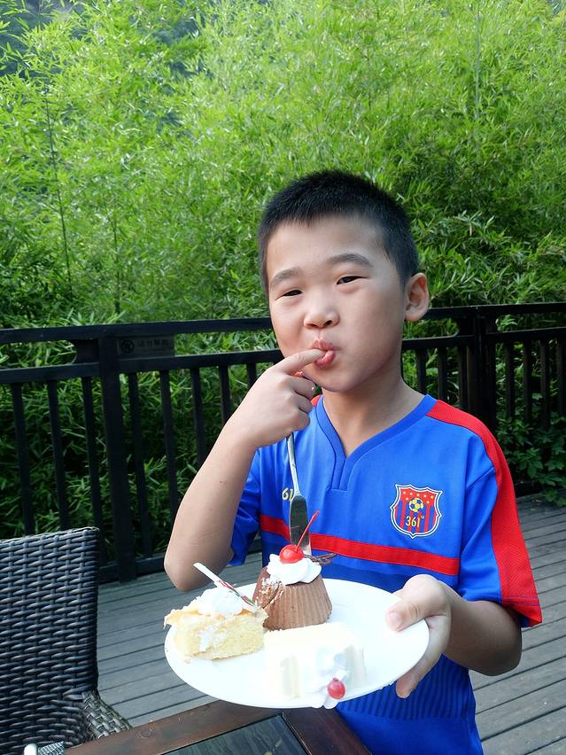 游完宝峰湖,离晚上看节目还有段时间,乐乐特别喜欢游泳,便来到酒店的户外游泳池,也算是无边游泳池吧。。我带的泳衣,但是没有什么兴趣下水,因为也是旱鸭子