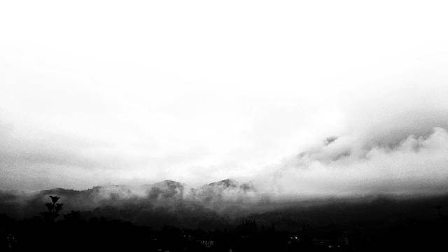从我住的房间里拍到的照片,给它加了一个黑白的滤镜,就变成一副水墨画了,嘻嘻。