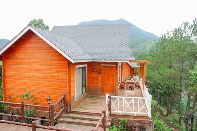 民宿的后院,按照东方庭院的模样设计。七八座小木屋四处散落在院子里,房间的名字都很好听,我住的是"采薇",取自《诗经》中的《小雅·采薇》的"采薇采薇"。我最喜欢的是这栋小木屋。