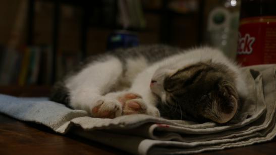 在民宿的第一个下午就和这三只小猫度过了,看着小奶喵在桌子上打盹,忍不住戳戳它。