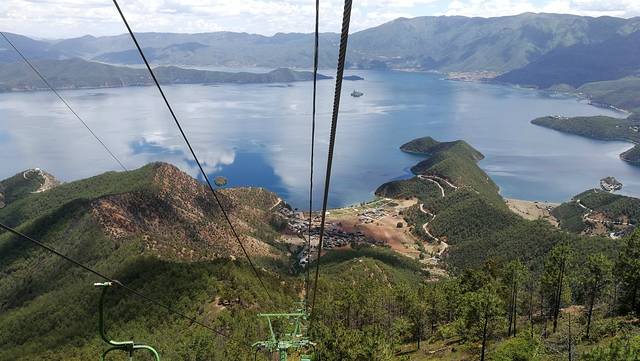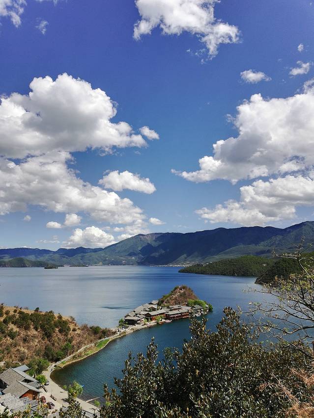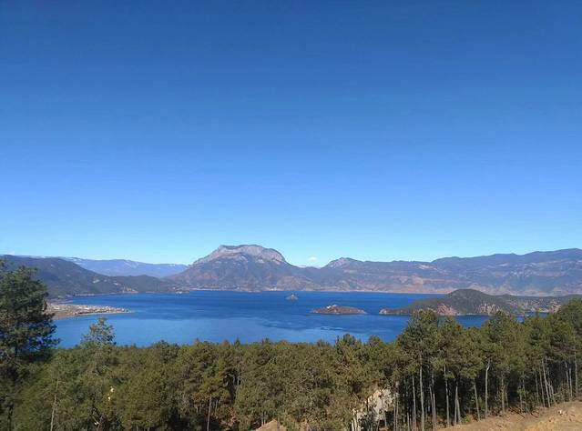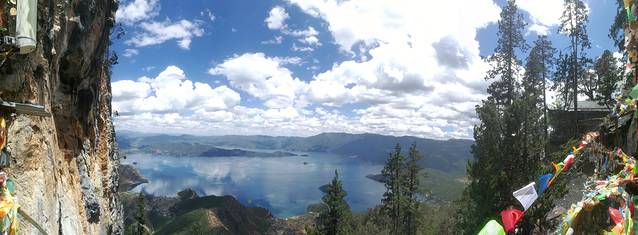 晴朗的天气在格姆女神山俯瞰泸沽湖真的很棒。