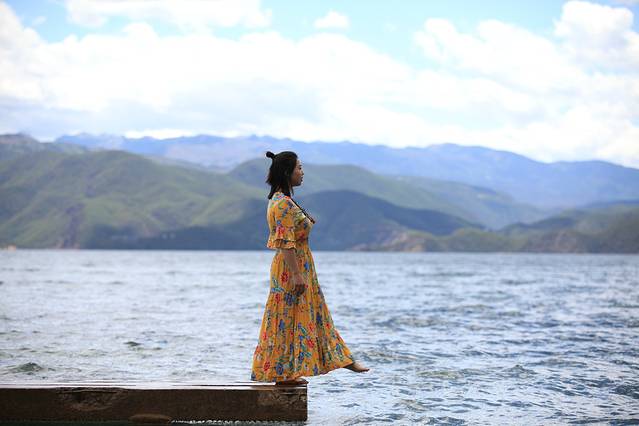 下一个必打卡的是四川情人滩。水面含开阔,还有特意修建的水上平台,还有在水边摇曳的猪槽船,这一切都在向我喧嚣:请换上美美的裙子来拍照!!!!