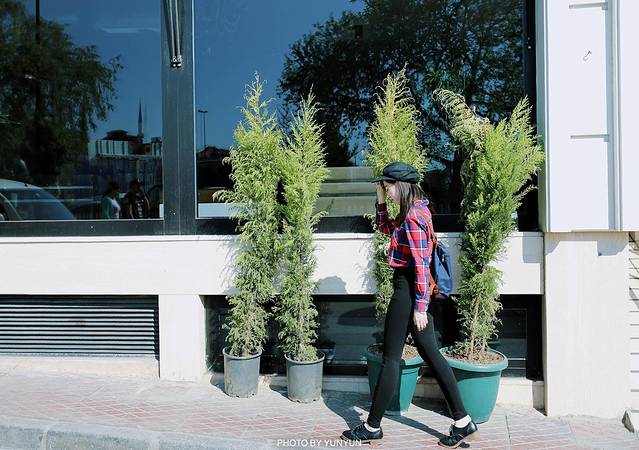 我带了3顶外加买了1顶,每一顶都发挥到它的作用了,谁叫我头发毛躁,镜头上不好看。英伦帽和娃娃帽都适合在Istanbul街拍~