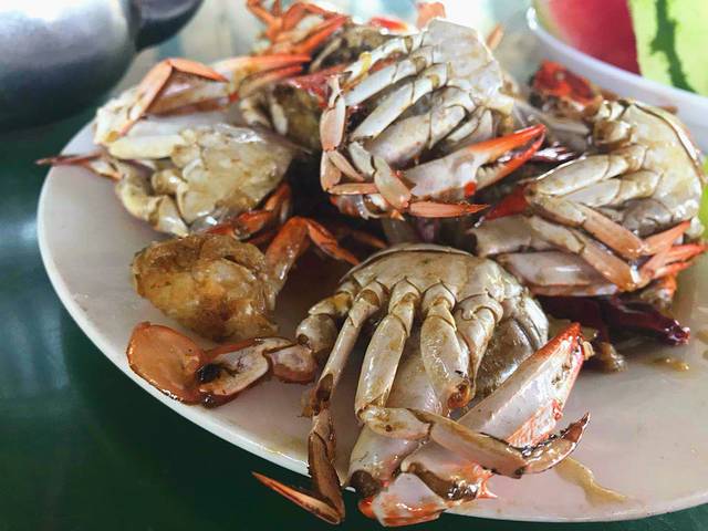 由于台风刚过,可选的海鲜并不多,有点遗憾。炒蛏子和花蟹都很好吃,没有多余的配料就是葱姜蒜炒,再加点本地小米椒,明朗直接的辣味儿和海鲜的鲜甜口感配合得刚刚好。
