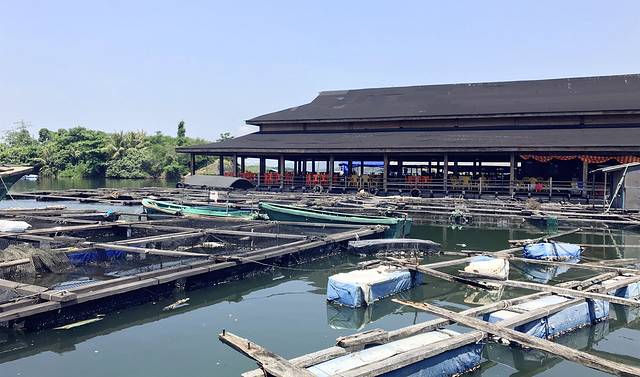 吃饭的地方边上就是鱼排。偶尔有风吹过,带着微微的海腥味。这样完全开放式的用餐环境,得亏当天温度不高。