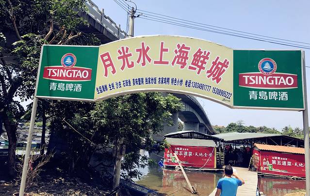 第一天的行程是先到月光水上海鲜城吃午饭,下午去分界洲。下车后,对着这个店招我思考了很久……这么诗意满满的店名,最后竟败给了青岛啤酒爸爸。