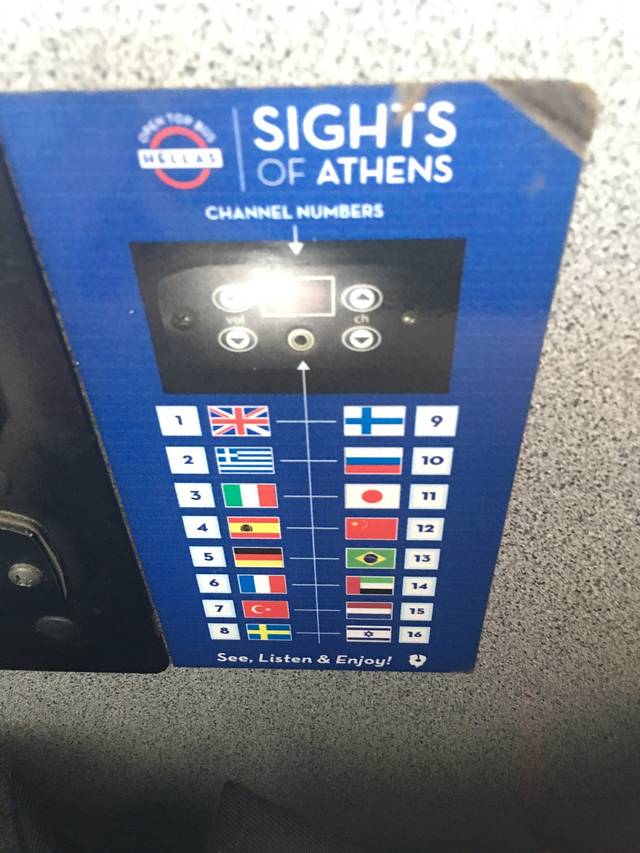 截止到2018年4月,车上已经有16种讲解语言了,上车时司机会发一个耳机,但个人感觉质量不太好,耳机孔是和普通耳机通用的,可以用自己常用的,调整到自己国家语言的那个数字,就能听到讲解了