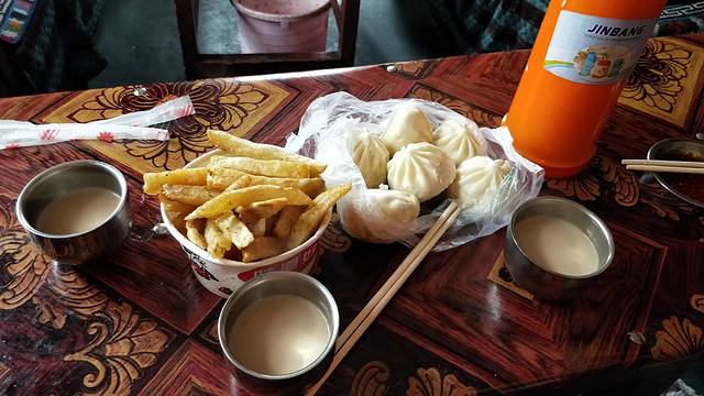 早餐:甜茶,包子,土豆条(推荐,好吃,好吃)