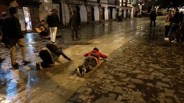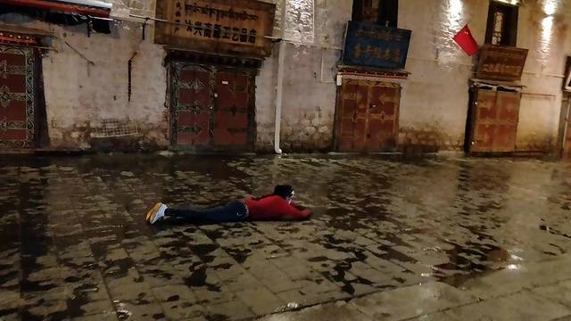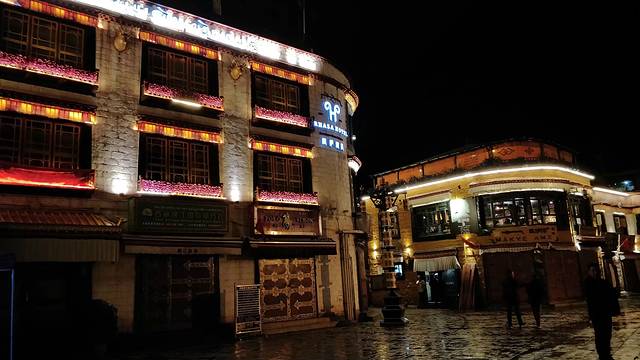 据说:坐在大昭寺广场前,喝着当地的甜茶,看着朝圣的信徒们,静静的想着什么,突然的就会潸然泪下,可能当时手里没有甜茶吧,泪点全无,特意的在之后的一个晚上,又一次来到大昭寺广场~