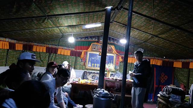 真是羡慕在海拔五千米以上能轻松入睡的人,珠峰大本营住的帐篷,大通铺!起初的两个小时我是能睡着的,中间被扰醒了,看了看星空,之后就睡不着了,吸了氧气也没缓解,胸闷,仿佛总有一口气是倒不上来的~然后一直断断续续折腾到天亮~在高海拔的地方睡觉折磨人啊,简直是精神崩溃着等天亮~