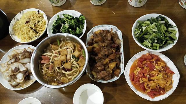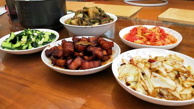 客栈拼餐,晚饭很丰盛了~但是没有了红烧肉~