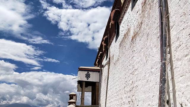 到了客栈,吃了止疼片喝了很多水,然后睡了两个小时,身体感觉舒服多了,第一天也没安排什么,到客栈的顶楼平台,看了看拉萨的蓝天白云,还有远处的布达拉宫~觉得终于可以触动些什么了~