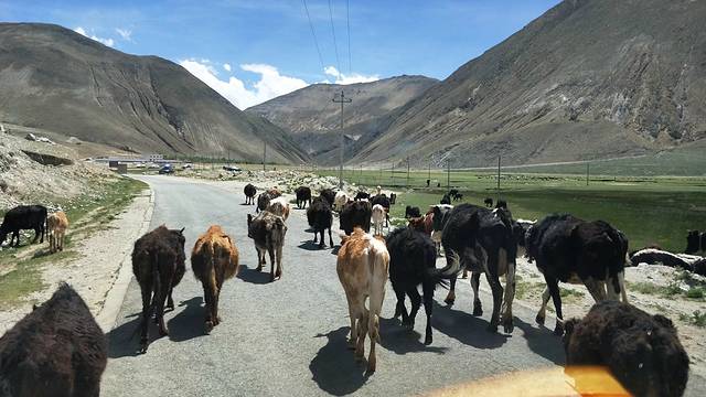 路上的牲畜很多,它们从来不怕人,从你面前擦身而过,从车前横穿马路~