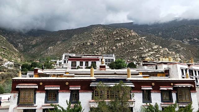 哲蚌寺,藏传佛教最大的寺庙,整个寺院规模宏大,鳞次栉比的白色建筑群依山铺满山坡,远望好似巨大的米堆,故名哲蚌。哲蚌,藏语意为“米聚”,象征繁荣,藏文全称意为“吉祥积米十方尊胜洲”,它是格鲁派中地位最高的寺院。
