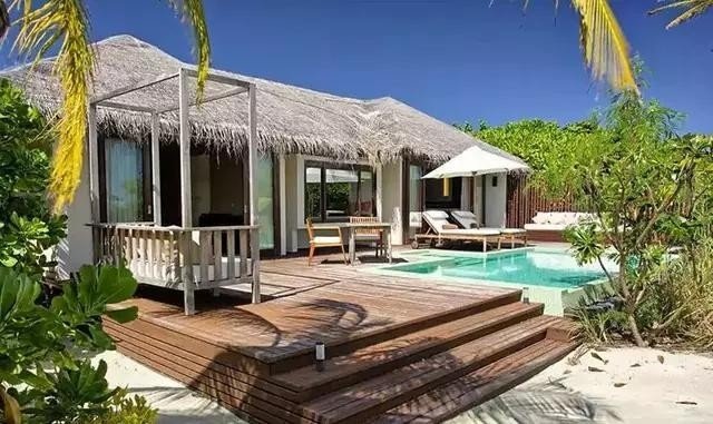 我们订的是普通沙滩别墅和水上别墅,都是没有泳池的,结果酒店都帮我们神级了,升级为了下面两种,房间大到没朋友,220平米