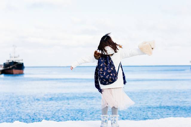 北海道 我穿的也差不多这样,脚上雪地靴。白天不冷,晚上会发抖。