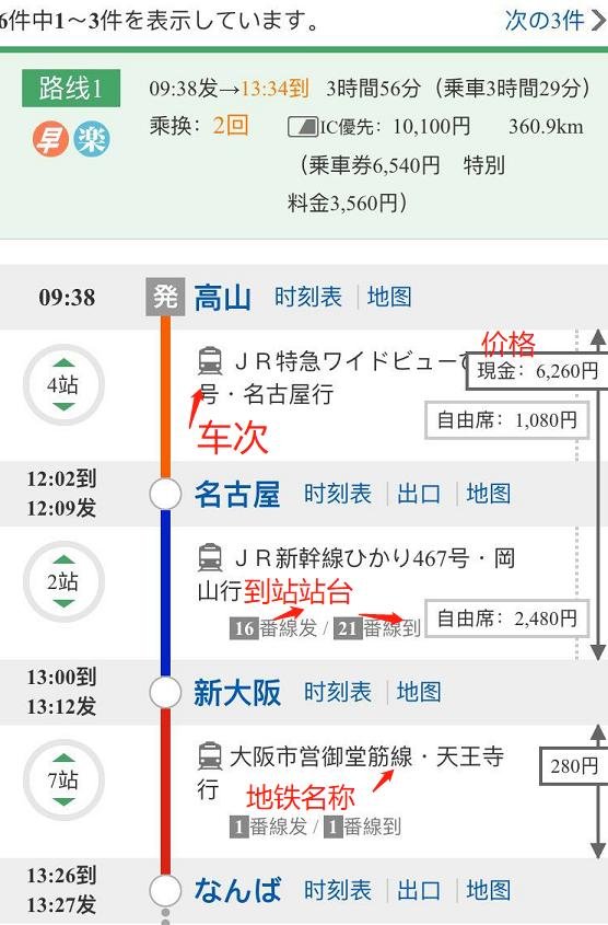 谷歌和换乘案内查询结果有时候会不一样的,我一般以换乘案内为主,谷歌、海鸥为辅。