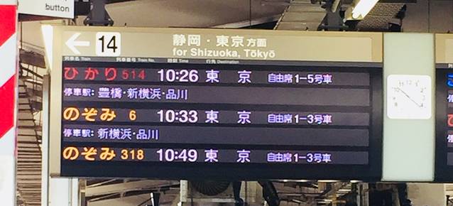 我们只遇到了希望号,是在 大阪 到 东京 的途中。希望号速度快一点,只在大站停。
