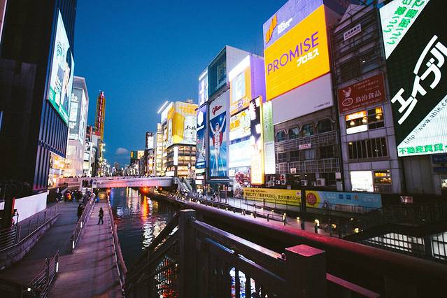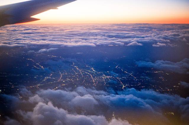 一路的吃吃喝喝中,我们就到 大阪 啦!!!窗外云层的空洞让我初见了 日本 ,云上夕阳的余晖映照着和云下灯火通明的城市让我想起了天上的街市。