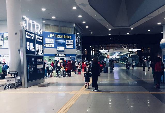 过了天桥就到了换乘大厅,可以选择做 南海 电车或者JR。大厅里有买票和办卡的地方,兑换JRPASS也在这里,上面写了大大的JR,然后有超级多人排队的。不要怀疑,就是这里,然后准备好你的兑换券和护照排队吧,一起的只需要一个人排队就可以了。