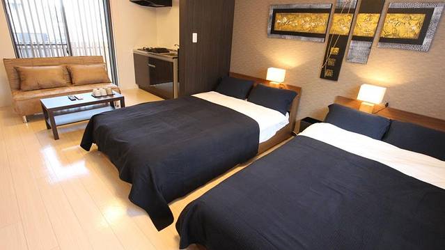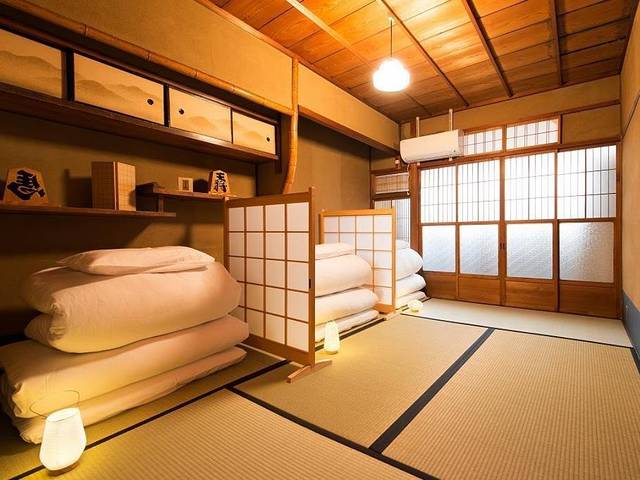 典型的日式旅馆,是榻榻米,四人睡有点挤,完全没有放行李的地方了;有潮气,淋浴间挺不错的;隔音不好;没有电梯,楼梯比较窄,走路走木地板那种登登登的声音。