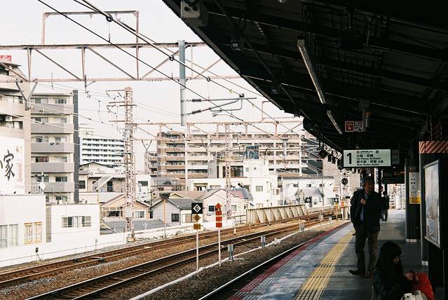 在车站可以看到大家都在排队的, 关西 和 东京 的上车和下车门不同,跟着人流走就可以了。
