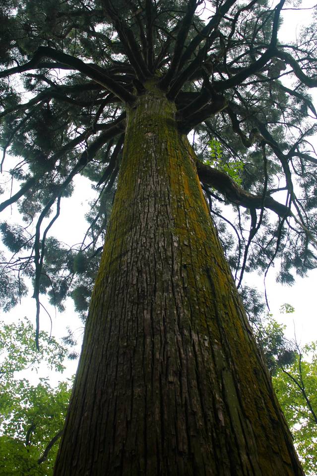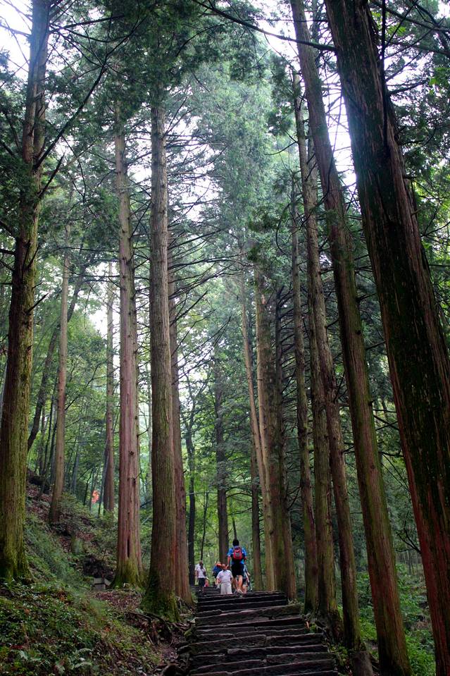 继续沿石阶往前,可经过乌龙潭、黄龙潭。然后沿林间石阶上行,一路密林蔽日,树干高耸挺拔。即便夏天骄阳下,人行其间,仍颇感凉爽,约300米即到三宝树。