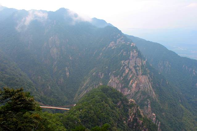 站在悬索桥,视野开阔,远眺可观赏铁船峰和石门。
