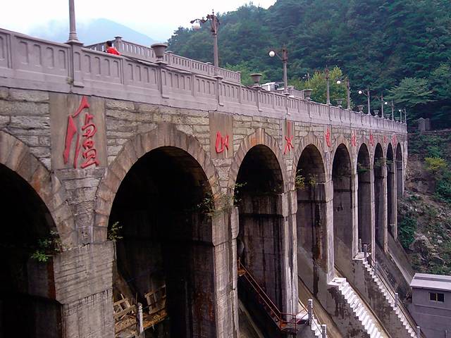 过了悬索桥,可游览石门涧,也可坐索道或是步行到达电站大坝。绝大部分游记都不推荐游石门涧,一是距离远,二是景色一般。所以我们选择徒步前往电站大坝。