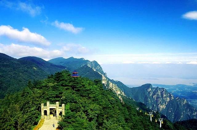 石坊后山脊上有一伞顶圆亭,名含鄱亭。登上含鄱亭,极目四眺,湖光山色,尽收眼底。因此,这里被称为庐山观云海和日出的最佳平台。