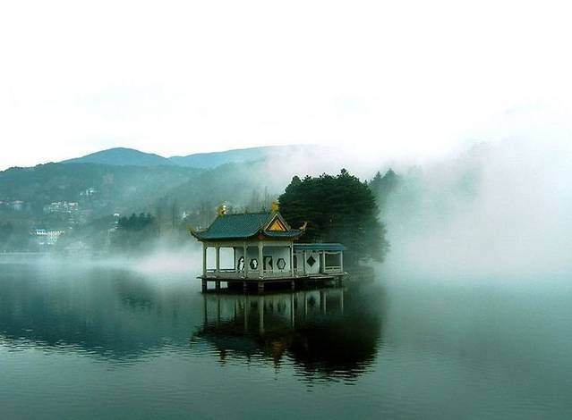 每当清晨或是雨季,湖面升腾雾气,将芦林湖装饰得宛若仙境。