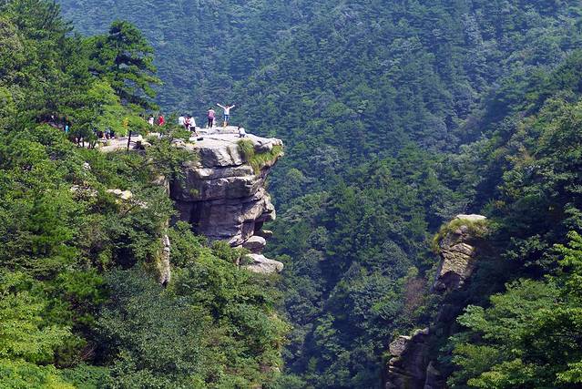 五老峰,由五个并列的山峰组成,犹如五位席地而坐的老者。可能真是应了那句著名的诗“不识庐山真面目”,深处其中,完全看不出这几座山峰哪里像五个老人?于是我专门上网搜了五老峰远景图片,仍然看不出来哪里像了。