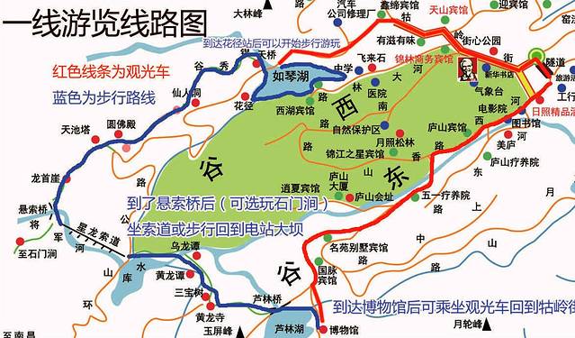 第一天:坐车到花径站-如琴湖-锦绣谷-天桥-险峰-谈判台-仙人洞-御碑亭-龙首崖-悬索桥-电站大坝-乌龙潭-黄龙潭-三宝树-黄龙寺-芦林湖-坐车返回牯岭街