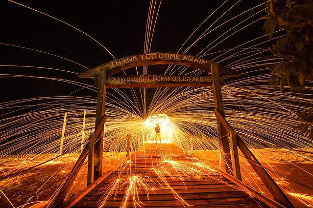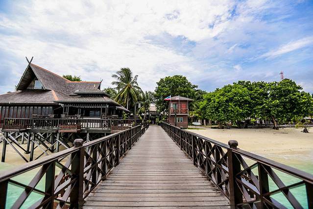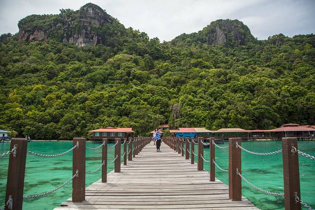 离开巴夭族,我们来到了珍珠岛,平时如果天气好的话是可以爬到山顶俯瞰整个敦沙卡兰海洋公园的,很多关于仙本那的全景照片都是拍摄于此。但是由于前天晚上下大雨,上山全是那种泥路,为了安全只能在山脚的廊桥拍照。