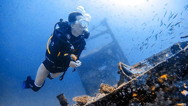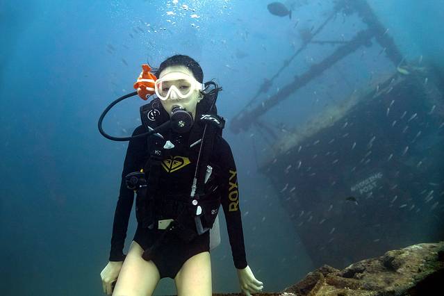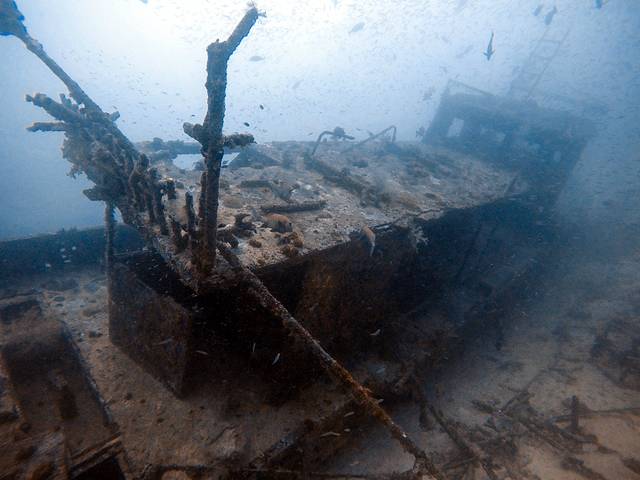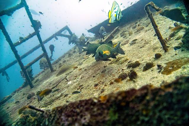 沉船的深度大约在27-30米左右,所以需要有AOW 潜水证才能去,而且邮筒旁有很多有毒的狮子鱼,注意不要碰到。生锈的铁板上布满了珊瑚和海葵,其中一朵海葵中间还有两只「尼莫」在穿梭~