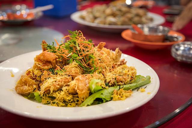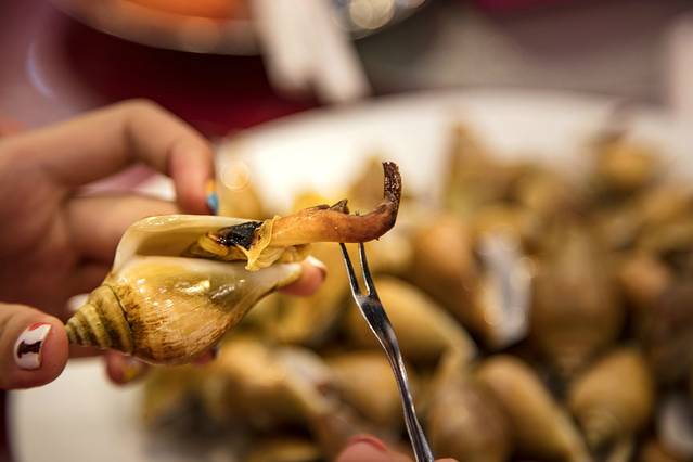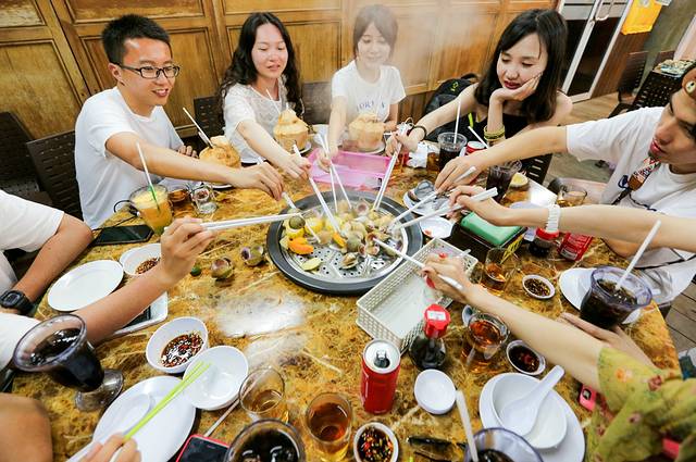 晚饭我们来到了斗湖的海鲜大排档,没有了太阳的炙烤,大家也都纷纷出动觅食。大排挡的海鲜种类很多,胳膊大的皮皮虾、龙虾、螃蟹、鱼,光是看着就觉得过瘾了。由于食材新鲜,所以每道菜上来都是秒光。这里还要推荐大家一个海鲜蘸料的吃法:店家会提供小米辣、蒜和青柠,将这三样等份的混在一起,倒入酱油,吃海鲜的时候蘸一点更有东南亚风味。