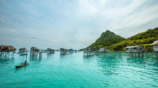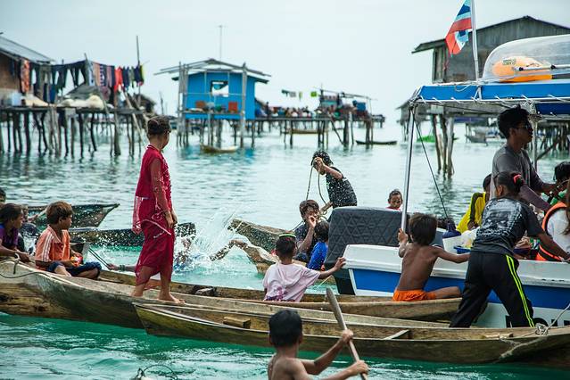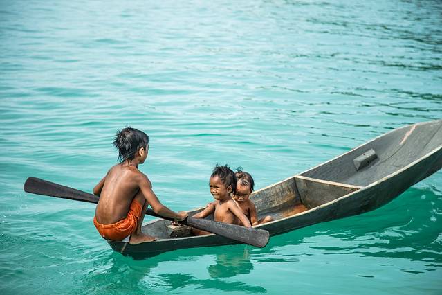 看到这片简陋的房子,也会想起柬埔寨的floating village。我们的船一靠近,就有很多人趴到船边来乞讨。无论是衣服还是身上带的墨镜、帽子、项链,他们都想要。但是出发前船员告诉我们不要给任何东西,一旦给了他们就会翻上船抢走船上所有的东西,我们也亲眼目睹了隔壁船因为给了些吃的,马上数十个划着自制船的巴瑶族人就一拥而上的上船抢东西。所以即使看到那些小朋友真的很可怜,我们也没有施舍。