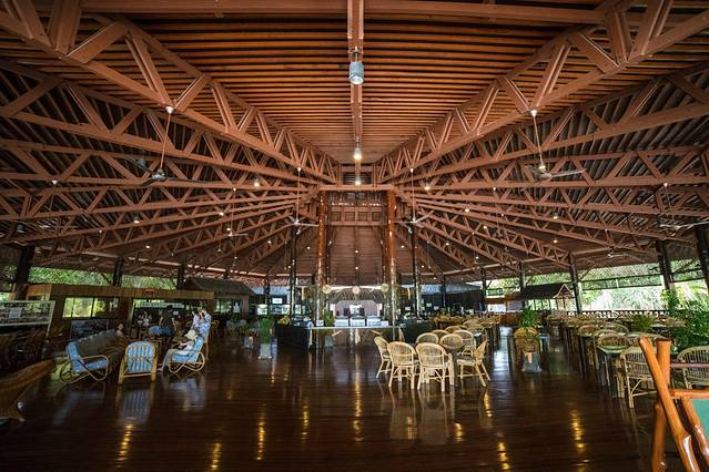 码头直达酒店大堂,行李就交给你的「手下」送达房间即可~酒吧和餐厅在一块儿,酒吧里有点歌台和台球室,餐厅分为内外两片餐区,海里游个泳,上岸就可以在这享受上水果和酒水,爽歪歪!