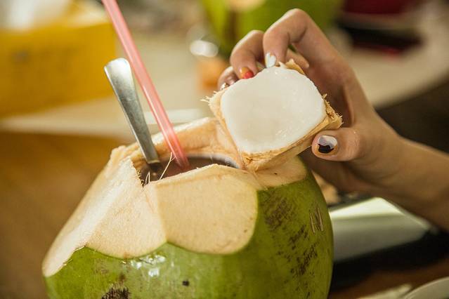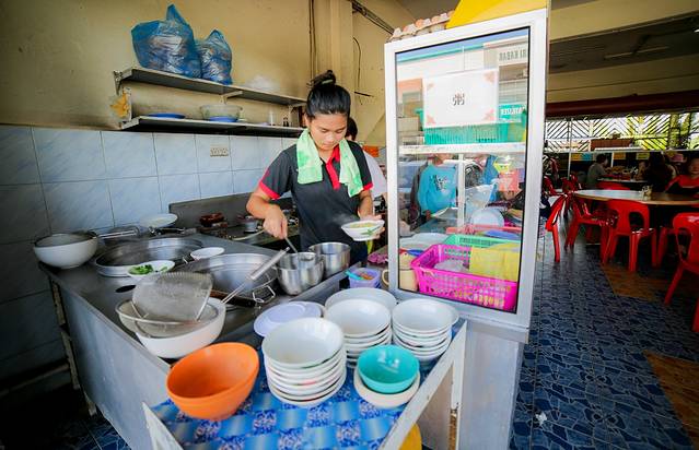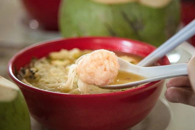 我们点了不同品种的粉面还有饺子,味道偏粤式,汤底会稍微带点甜。强烈推荐手工虾丸!虽然一粒3马币,但是虾肉非常新鲜Q弹,而且分量很足,没有参杂面粉。配上一个新鲜的冰冻椰子,清凉解暑,椰肉也可以挖来吃噢。