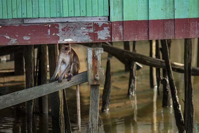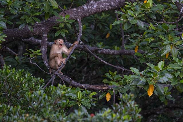在看到一些长尾猴之后,终于跟长鼻猴相见了!它在岸上呆呆的看着我们,船稍靠近一些就跑到林子深处去了。仔细观察会发现,鼻子特别长的就是公猴,鼻子偏短的就是母猴了。