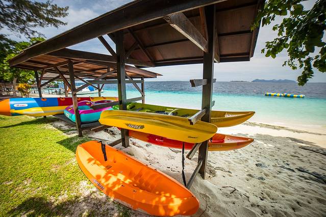 度假村里就有潜水中心,可以安排马达京附近的浮潜或者深浅,也有装备租赁。
