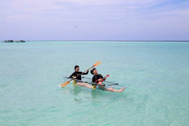 一日游的船夫还给我们提供了火烈鸟的网红泳圈和玻璃船,小伙伴们纷纷下水拍照,玩的不亦乐乎。
