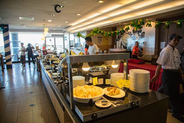 餐厅位于酒店的7楼,提供西式和马来风味的自助餐,菜式不算多。室外的阳台视野宽阔,是看日落的好去处。