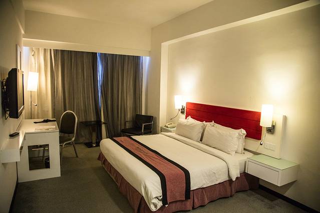 赶了一天的路,我们终于到达了斗湖镇。虽然这儿只是去仙本那的中转点,但是通宵转机飞了快十个小时的我们决定在这儿停留一天,稍作休息。Promenade Hotel 中文是斗湖凯城酒店,从机场开车过来约半个小时,导游告诉我们这里是斗湖最高的建筑了。