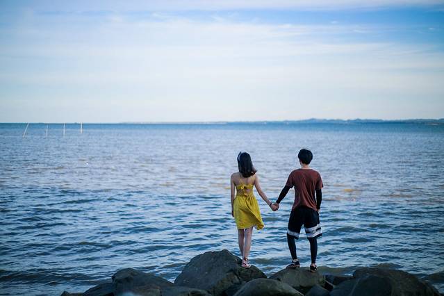 太阳快落山的时候,我们来到了海边。说实话斗湖海的水质并不怎么好,附近有很多大的运输船,水都有些发黑了,岸边也有很多垃圾。但是只要你有发现美的眼睛,旅途中到处都会有风景。